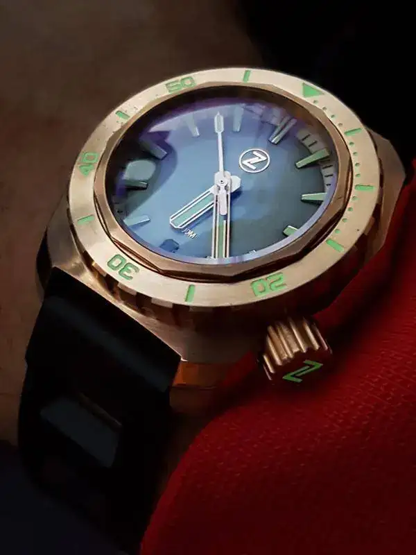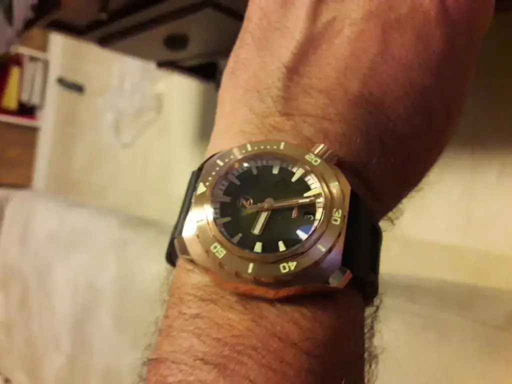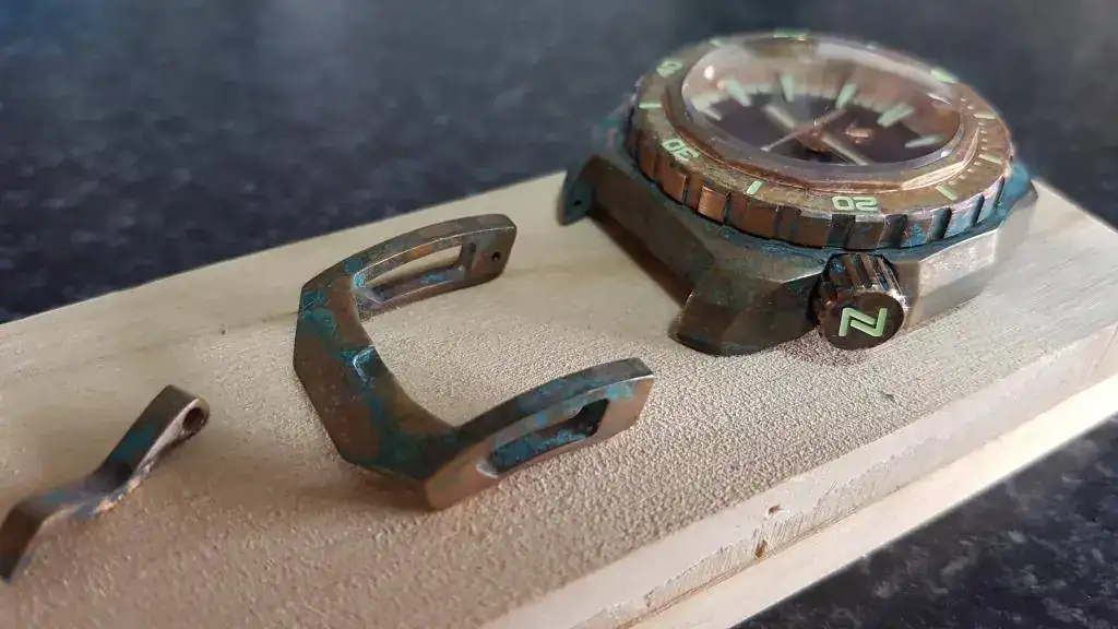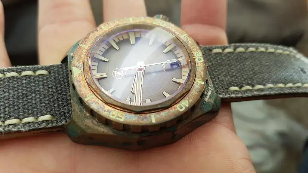 Pues segun las especificaciones es CuSn8. Si no me equivoco es el que utilizan todas las marcas... ¿No?A mi parecer demasiadas marcas en un solo día. Salvo que la aleación este realizada así a posta, no me parece adecuada para el reloj.