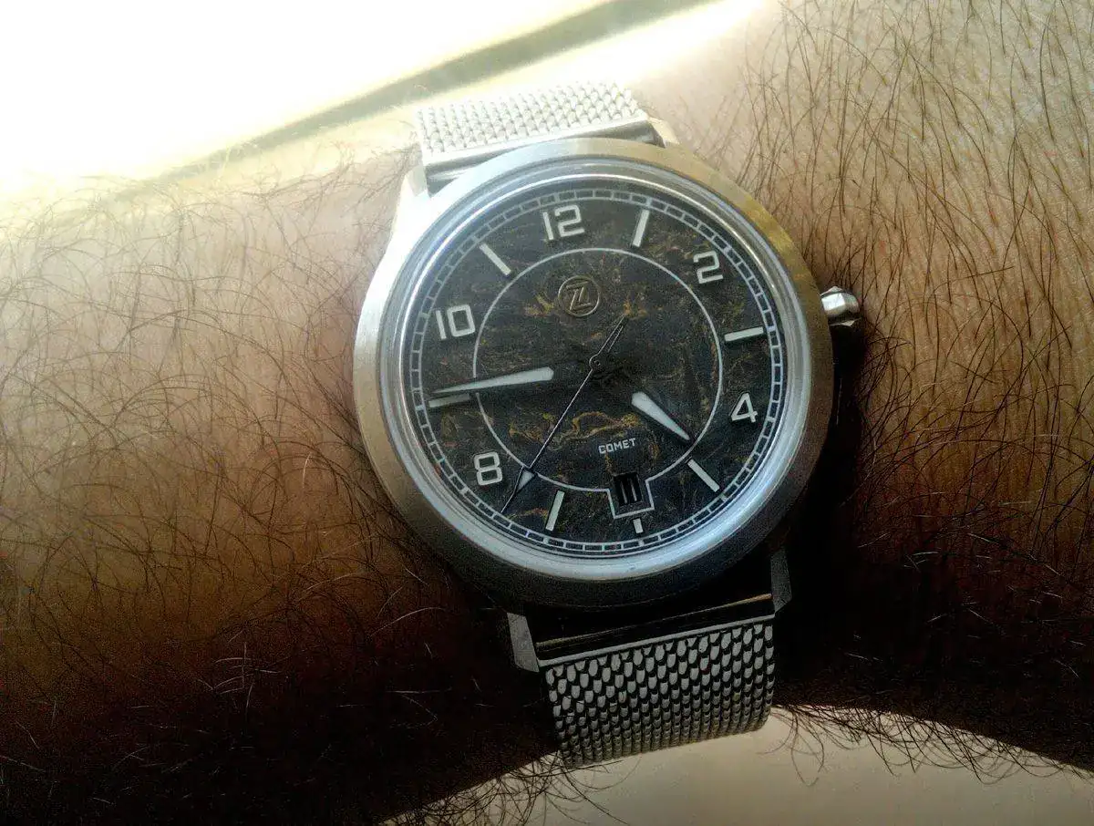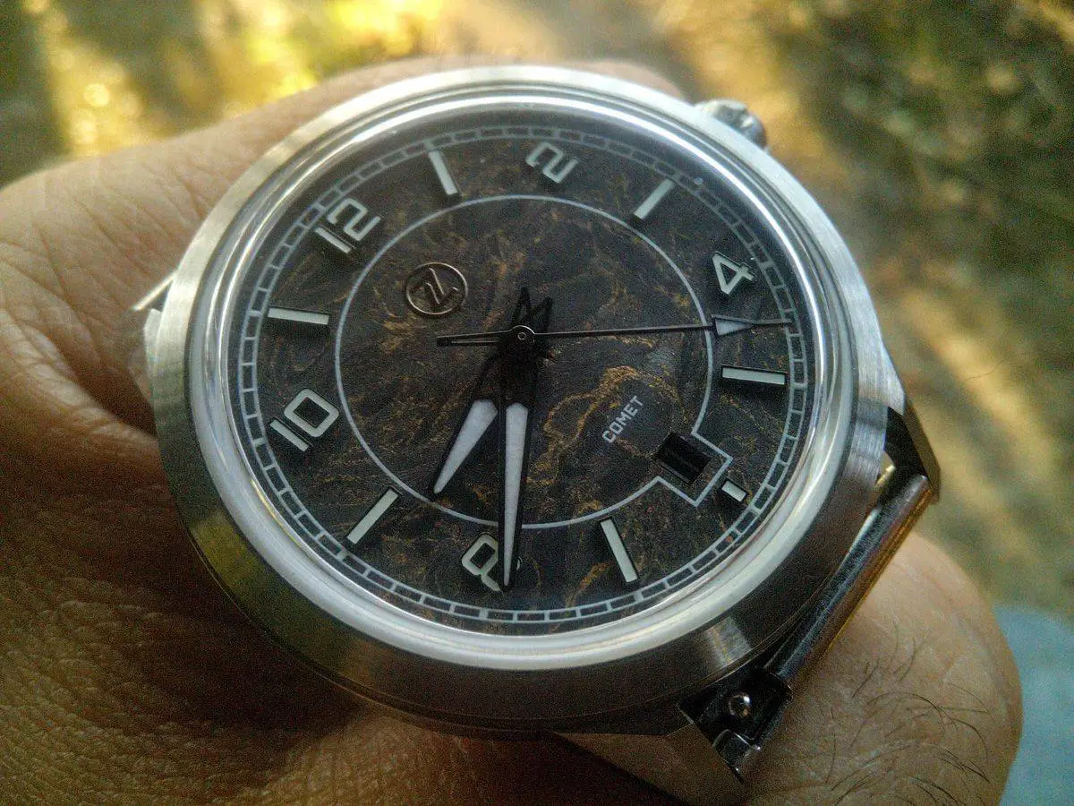 Las características del Comet son relevantes como era de esperar en Zelos, destaca su movimiento a cuerda Sellita SW215. Para los distintos modelos se ha elegido diseños bastante atrevidos para tratarse de un reloj a cuerda, destacan: NASA, Gold Carbon, Tuxedo y Aventurine. Mis preferidos son el aquí presentado Gold Carbon y NASA. Por cierto, para la compra de un reloj Zelos sale mejor (AHORA) a través de Serious Watches porque el sablazo DHL en las aduanas es una pasada.