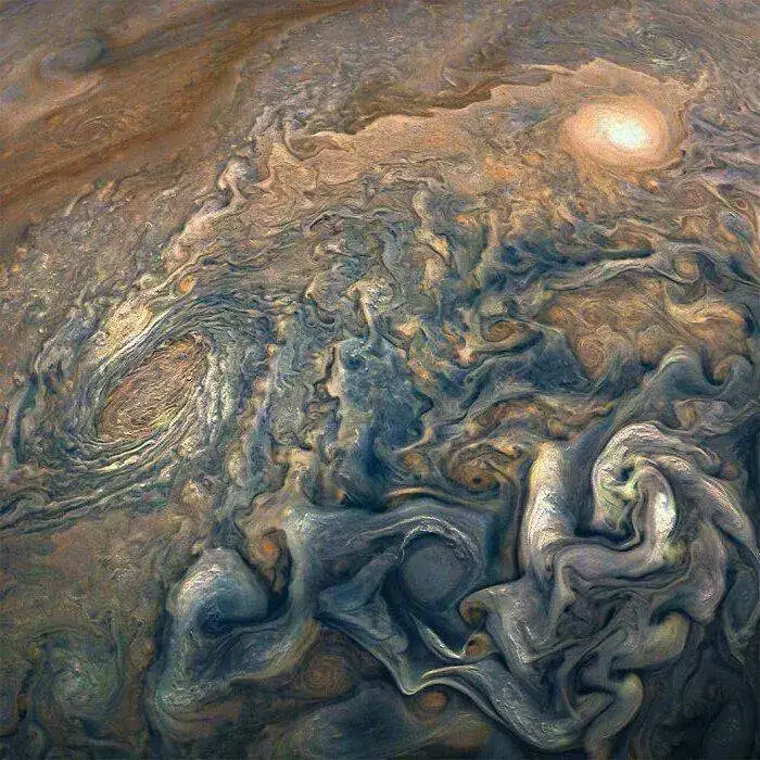 Espectaculares tormentas en Júpiter. Créditos: NASA / JPL-Caltech / SwRI / MSSS / Roman Tkachenko
