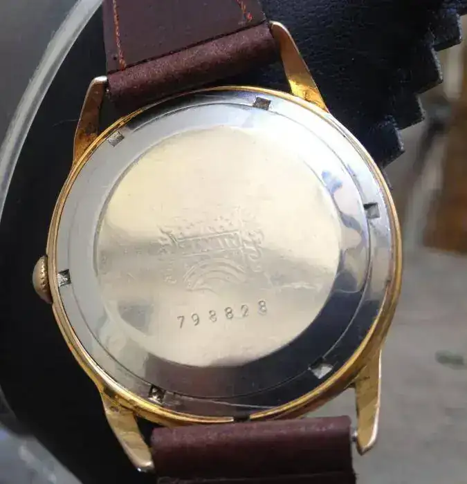 El calibre está muy limpio, y es precioso. El reloj anda, avanza un par de minutos por día en posición horizontal, pero puesto va mucho mejor, nada que con una revisión no se corrija fácilmente. El bajo precio del reloj es debido a un problema en las asas de la caja. La caja está chapada en oro con 40M y es muy bonita también, pero las dos asas de la parte derecha están torcidas hacia adentro. Yo no he tenido ni tiempo de llevarlo al joyero a ver que se puede hacer, pero es que tengo otros proyectos en la cabeza y no veo muy claro querer meterme en este. De todas formas el reloj puede utilizarse perfectamente, y se pueden ir corrigiendo los problemas poco a poco.