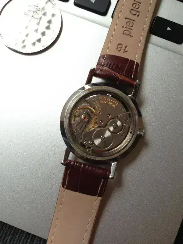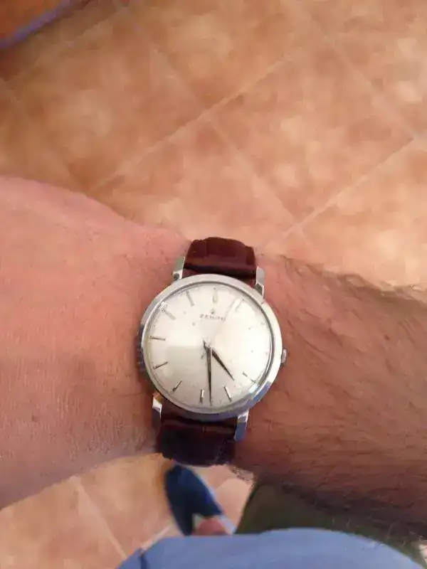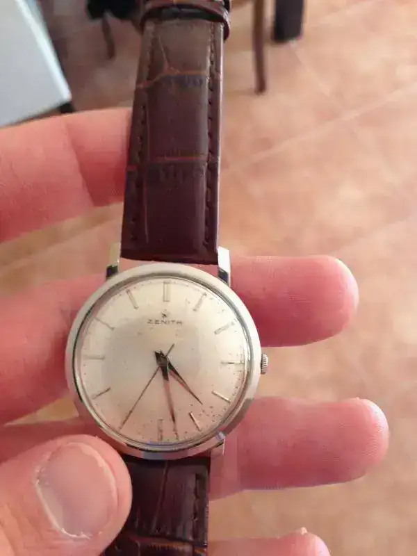 Vendo este Zenith Vintage con Calibre 2522 que me ha llegado procedente de un cambio, y al que no he dado uso. Su tamaño es de 35mm sin corona, como se puede apreciar en las fotos, no queda nada mal en muñeca de 17 cm. El reloj tiene la corona firmada, así como la caja y el dial original.