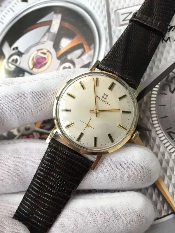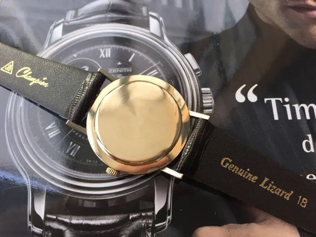 El reloj como vereís en las fotografías esta magnífico, tamaño cadete "34.5mm de caja sin corona", el dial esta de origen y no ha sido restaurado, saetas originales, corona firmada con el sello de zenith, maquinaria en perfecto estado de funcionamiento, subdial a las seis para secundero, asas grandes, correa de su época en piel de cocodrilo nueva marrón oscuro en 18mm de la marca jb champion, con los grabados en la tapa posterior y la reseña del oro y las referencia en su maquinaria.