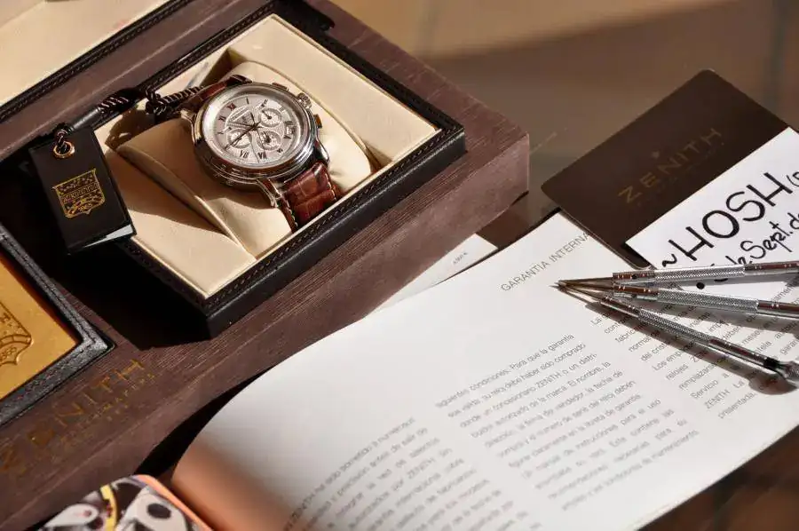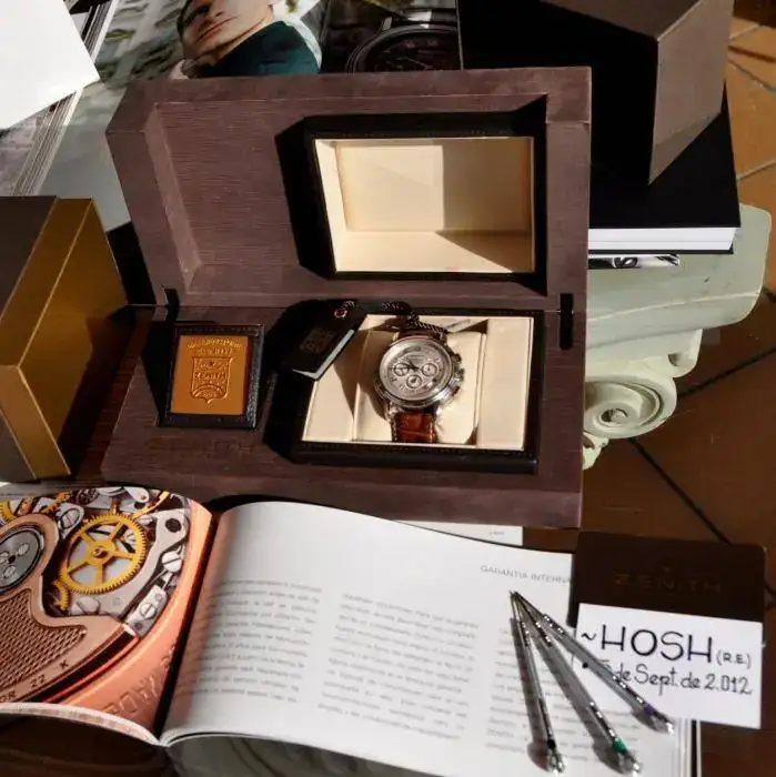 ESTADO: Año 2008, caja exterior, interior, lacre piel, garantía y colección de libros Zenith incluidos. El estado es, como se aprecia en las fotografías, de reestreno absoluto. Muy poco uso. Acaba de pasar una revisión en Zenith y cuenta con un año de garantía oficial de la manufactura.