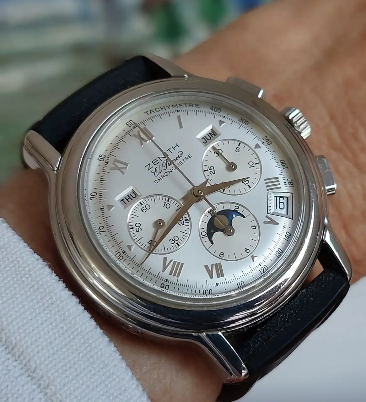 Me encantan todos los chronos Zenith y la crisis causada por tu hilo me ha recordado el que tiene mi marido, me lo he probado muuuchas veces