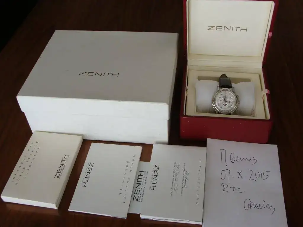 Saco a la venta este ZENITH, modelo CHRONOMASTER, con las complicaciones que podeis mirar abajo: triple calendar, fase lunar y cronógrafo.