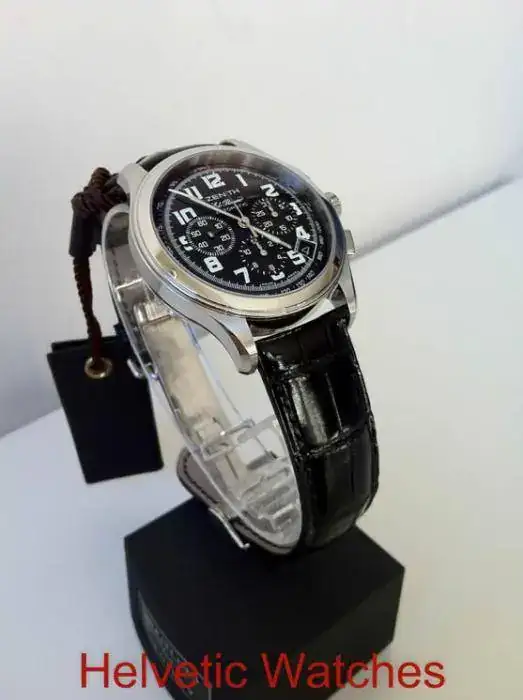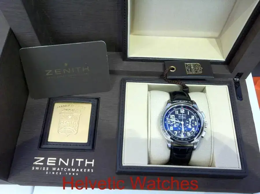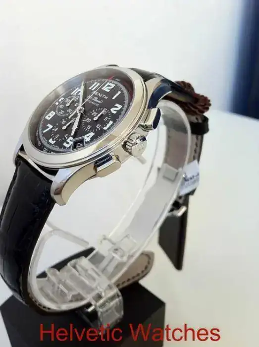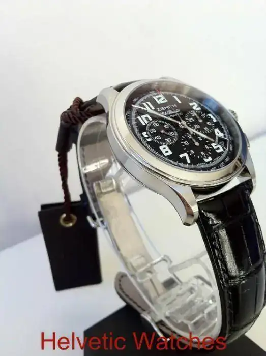 Esfera negra, zafiro con doble antirreflejo y fondo visto que permite admirar el legendario movimiento cronografo de alta frecuencia el primero 400.