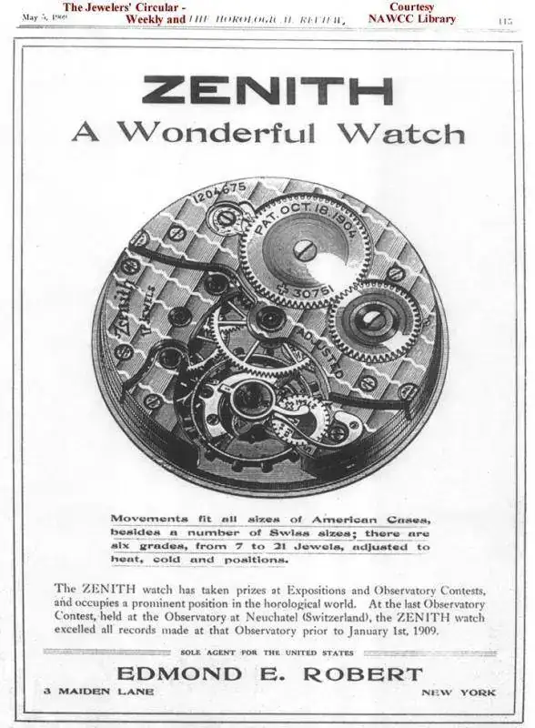 En 1970, Zenith demuestra la robustez y la precisión de su movimiento colocándolo en el tren de aterrizaje de un boeing 707 que recorría el trayecto de Paris a Nueva York. Pese al descenso de la temperatura (-62ºC), la baja presión, la gran altura (10.700 metros) y las distintas vibraciones a las que se vió sometido, al llegar a su destino el reloj seguía funcionando correctamente.
