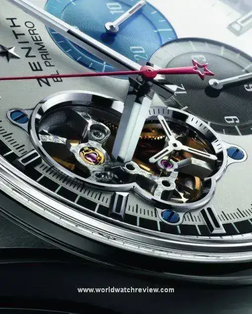 El fondo es visto, lo que convierte en un auténtico espectáculo la observación de su funcionamiento y de todos los piñones y engranajes que hay en su mecanismo. La masa oscilante está decorada con el perfil de la estrella de cinco puntas y la leyenda “ZENITH EL PRIMERO” Y “MANUFACTURE LE LOCLE”