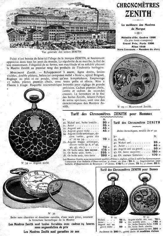 En el año 1900 la Exposición Universal de Paris concede la medalla de oro a Zenith. Con el inicio del siglo XX, Zenith experimenta una gran expansión, y emplea a una gran cantidad de trabajadores.