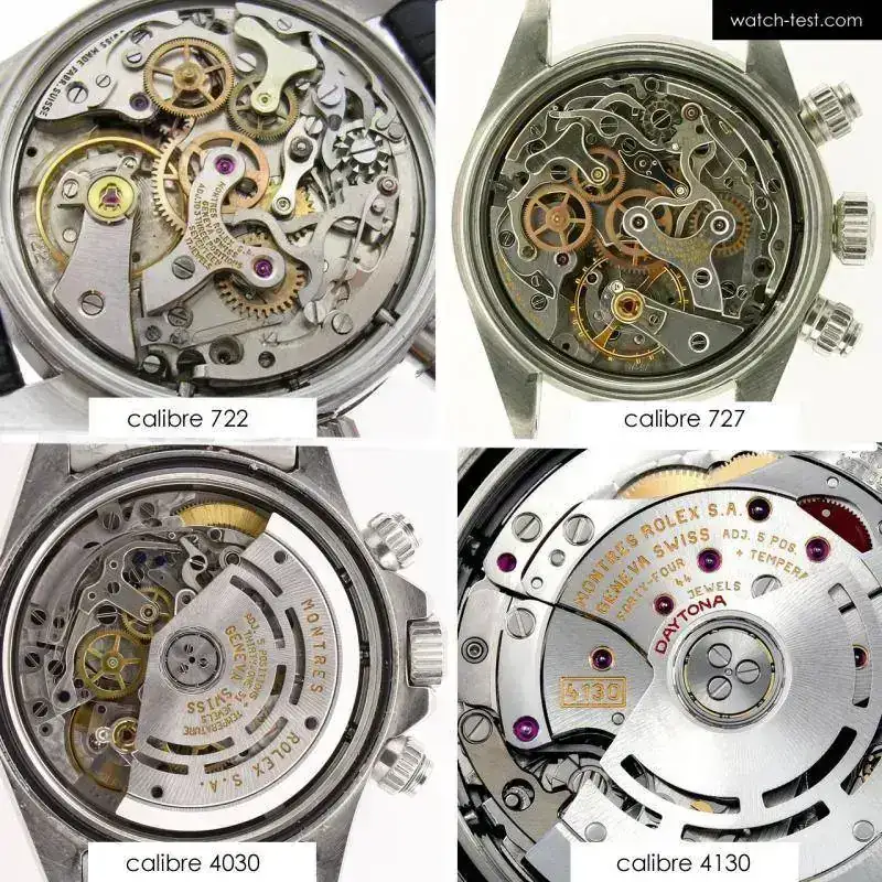 Los primeros calibres, Valjoux 72, que llevaban los Rolex Daytona eran de carga manual, posteriormente Rolex los rediseñó, conviertiendolos en el calibre 722.
