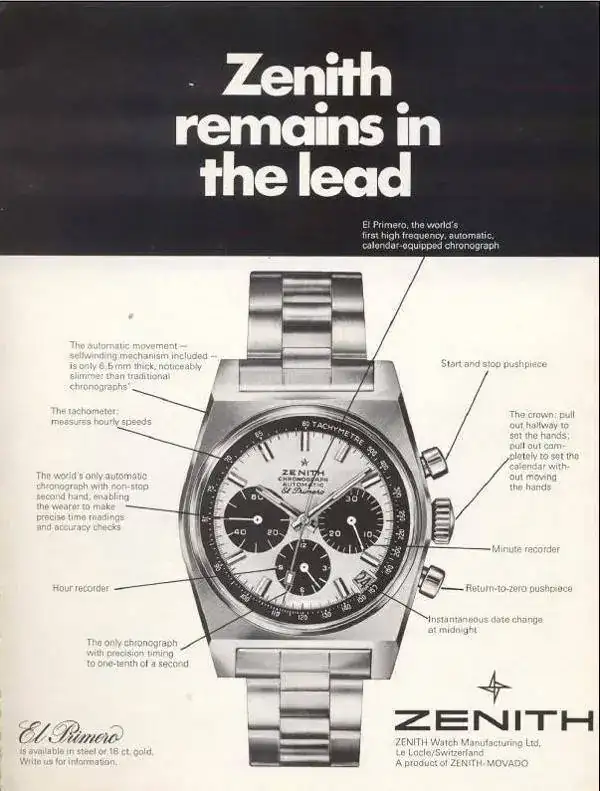 Permitidme que añada publicidad de Zenith para ilustrar mejor la imagen que han querido transmitir a lo largo de todos estos años.