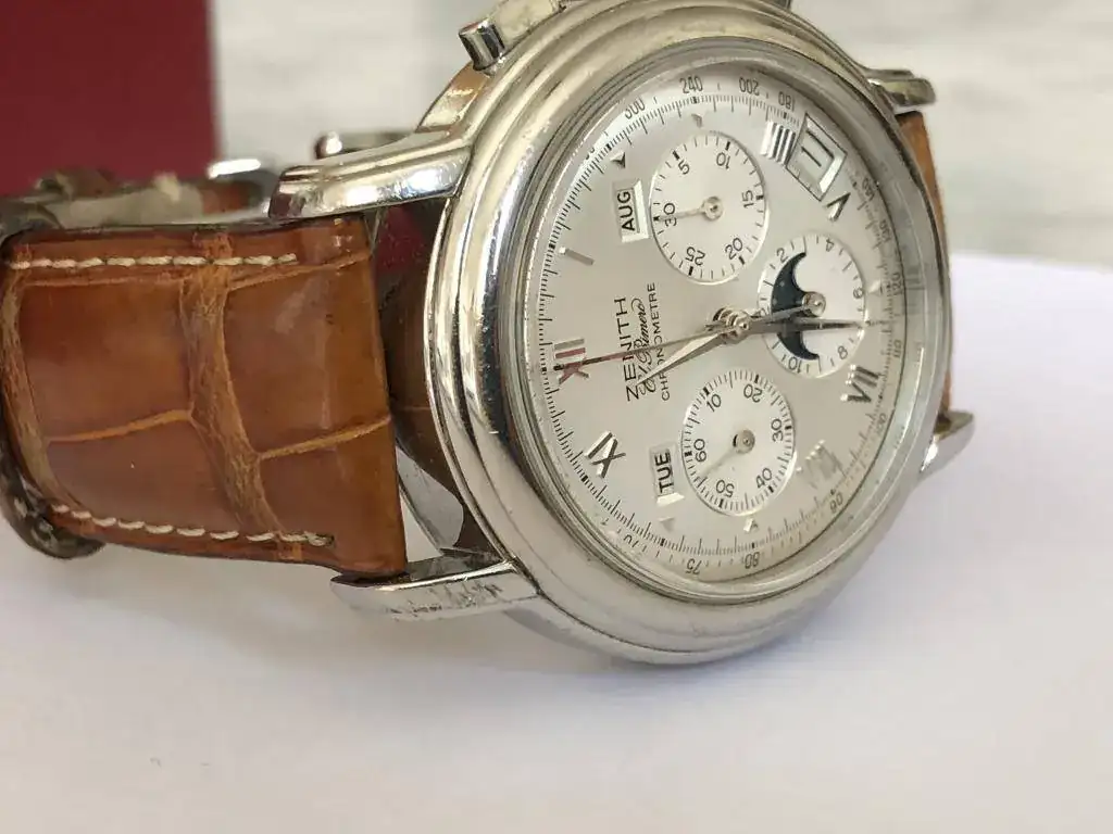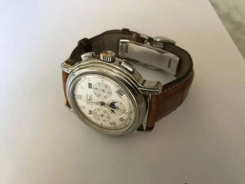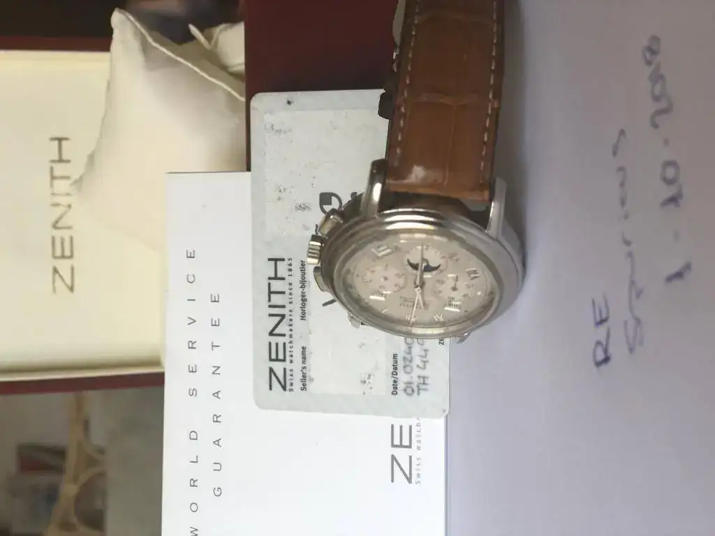 Buenos días, saco para venta este Zenith "El Primero" Chronomaster con fase lunar, comprado en la relojeria Valiño aqui en Barcelona. Viene con el set completo, tarjeta garantía y caja.