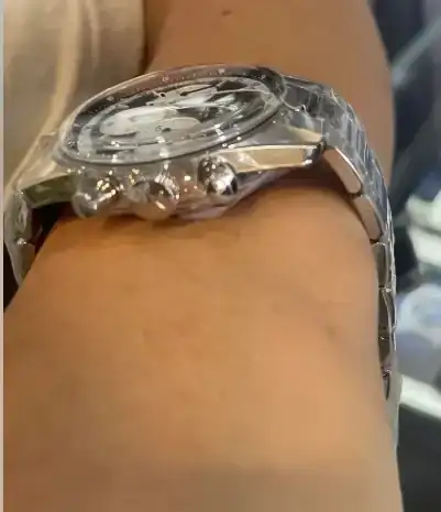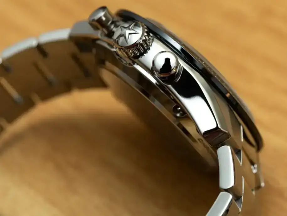 Y por todo ello me fijé aun mas en el Chronomaster sport; un reloj que además me encantó desde el primer día que lo vi, con un aspecto mas deportivo con su bisel cerámico (con su innegable 'aire' daytona). Aunque me daba miedo sus 41mm al probármelo mas bien se sentía como un reloj de 40mm que curiosamente me parecía mas cómodo de llevar que los 38mm de El Primero, seguramente por lo que he comentado de la altura de las asas respecto al fondo de la caja, que siendo mas alto el reloj en su totalidad está mas compensado: