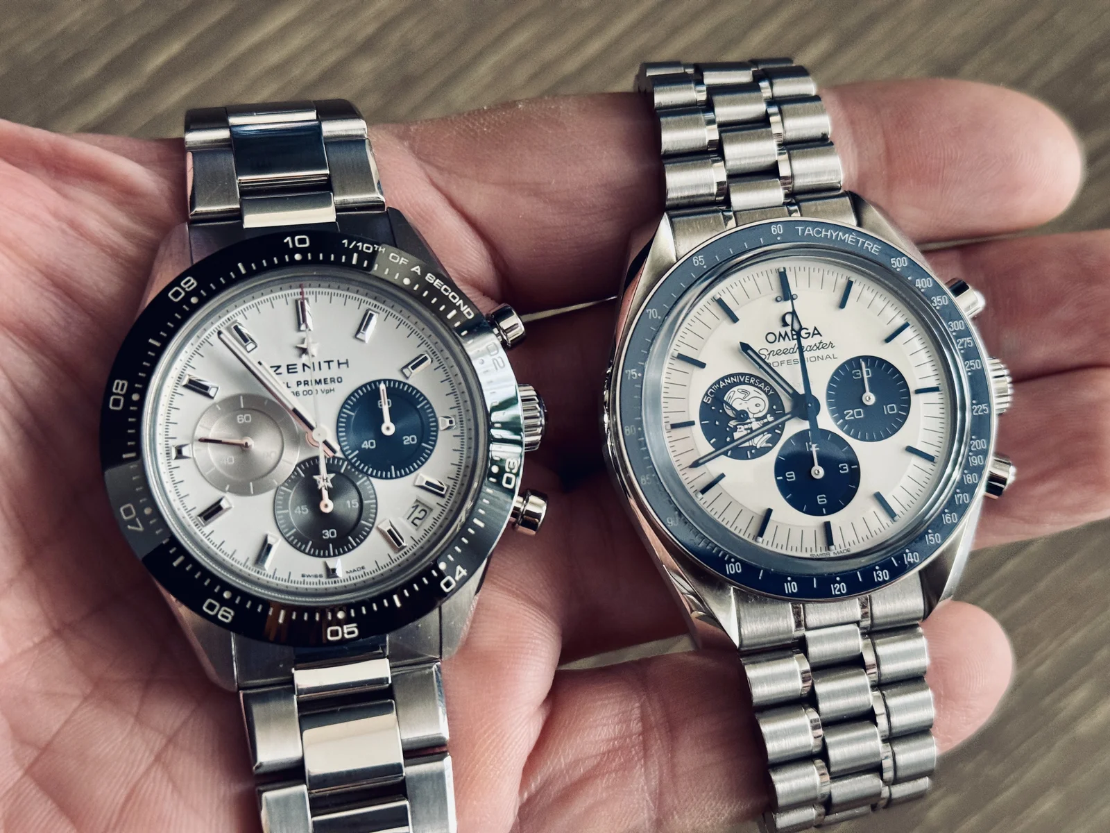 Pues al final me junté con el tandem de Speedmaster + Zenith, pero en sus versiones de 'perrillo' y 'zenitona'... y sinceramente si tuviera que elegir a nivel estético y funcional uno de esos dos sería el zenith, principalmente por sentirlo mas cómodo, algo mas pequeño y calibre automático.