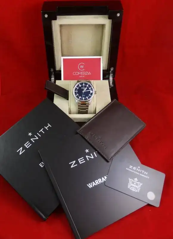 El reloj es completamente nuevo a estrenar. Proviene de CO autorizado y se sellará la garantía en el momento de la compra, por supuesto con garantía oficial Zenith. Incluye todo el set, formado por tarjeta de garantía, cartera, libro de garantía, manual, caja y sobre-caja de cartón. En su interior un calibre El Primero solo hora.