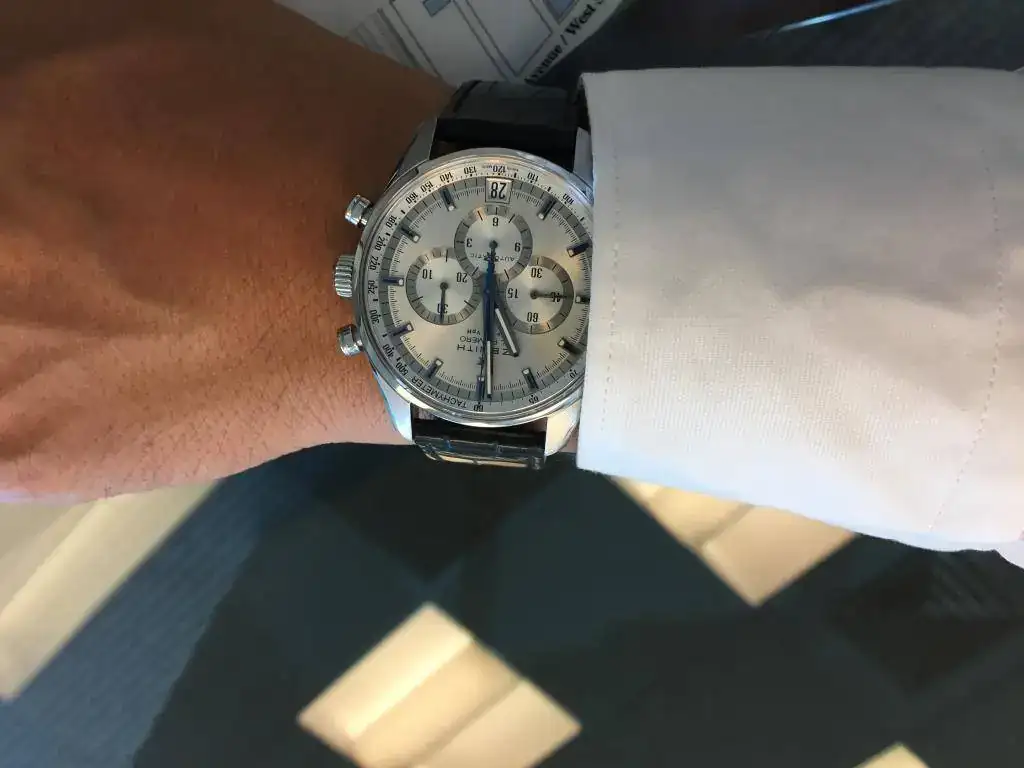 41 mm. sin bisel requieren de cierta muñeca de la que carezco y los 38mm del Zenith lo convierten en un bombón para nosotros, los de muñeca elegante.