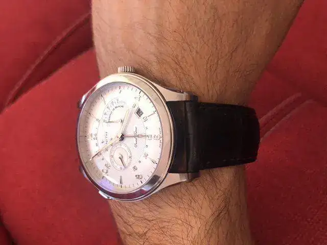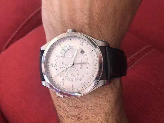 Es un reloj de vestir imponente con sus 44mm sin corona. Es una delicia cargar su calibre Elite y ver cómo sube la reserva de marcha. Y además tiene la complicación GMT!