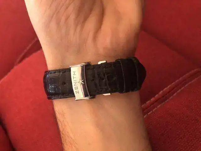 Brazalete:Correa (usada) original de piel y cierre deployante Zenith.