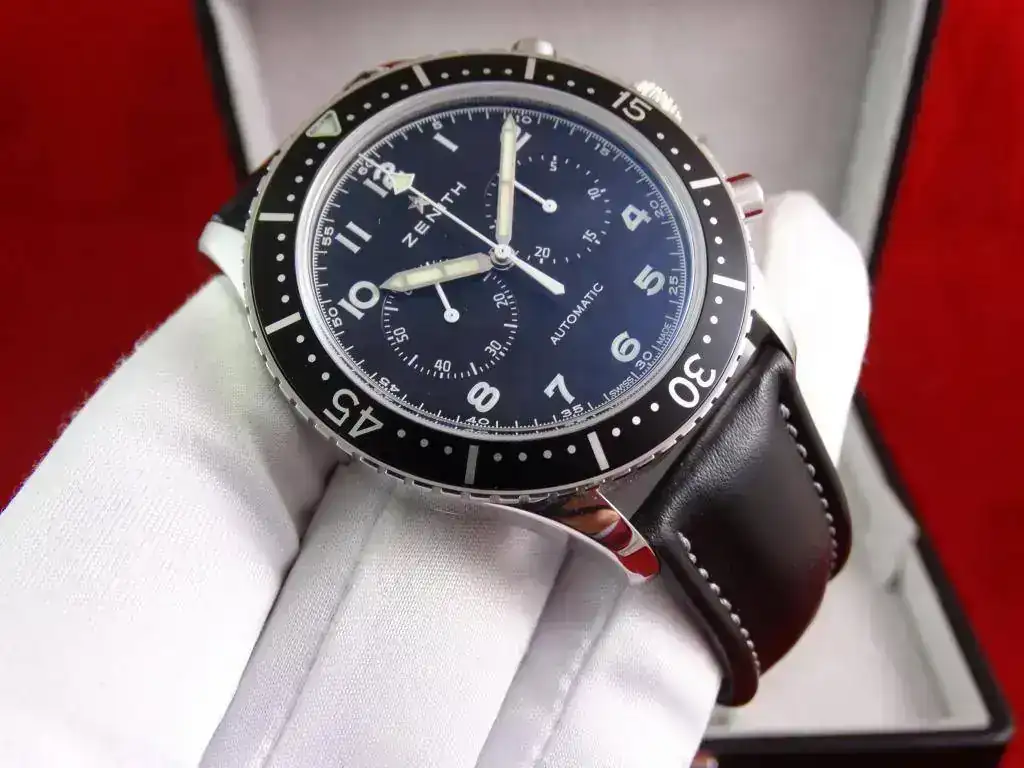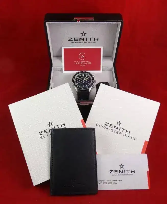 Proponemos para venta o cambio este cronógrafo de ZENITH. Aunque no se incluye en su denominación, el reloj rinde un homenaje al “Cairelli”, utilizado por el ejército italiano para equipar a los pilotos de sus fuerzas aéreas y navales, a través del distribuidor “A. Cairelli”, con sede en Roma. Se estima que se entregaron 2.500 cronógrafos, modelos que los pilotos de los U.S. Lockheed F104 Starfighter aún lucían a finales de los 70 en la Matricola Militare y en la Aeronautica Militare Italiana. Este homenaje es muy fiel al original, respetando las dos esferas y sus 43 mm, aunque cambiando su denominación de la esfera por “Automatic”. Tenéis más información en este artículo oficial de la marca: https://www.zenith-watches.com/es_es/news