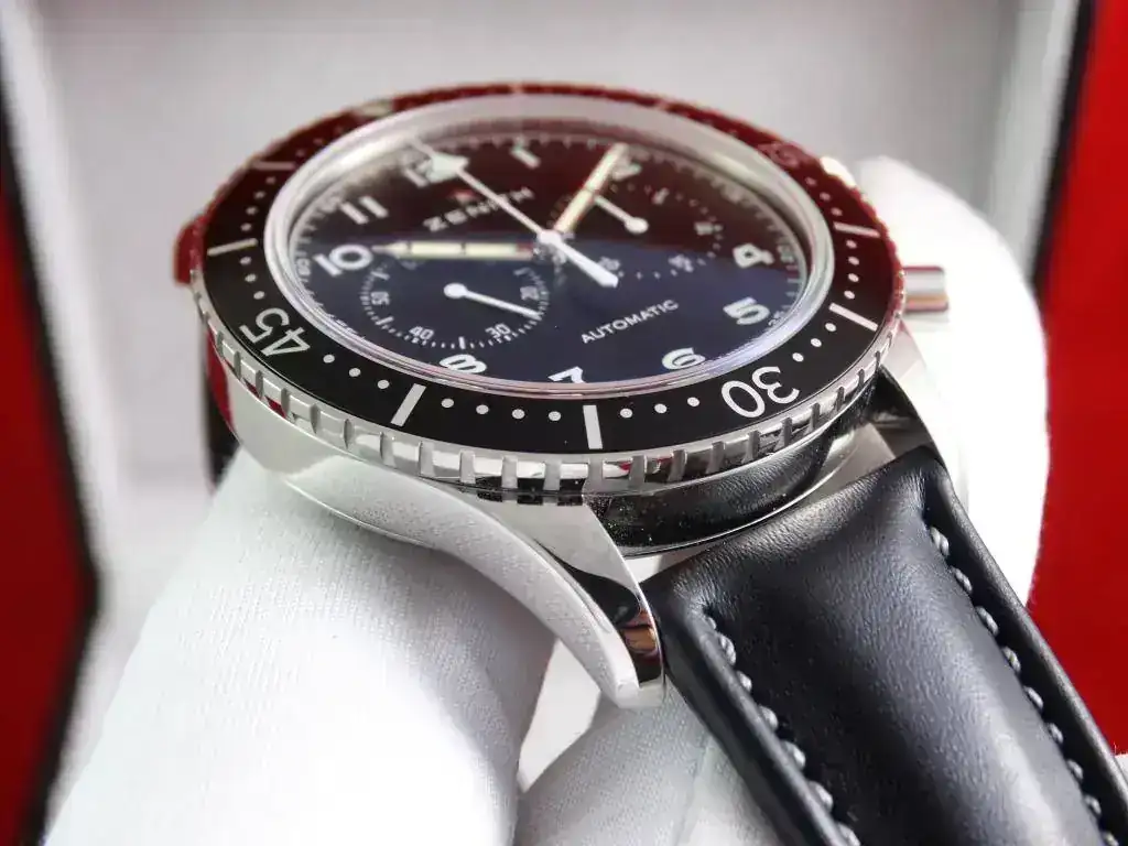 El reloj se ofrece con el calibre automático ElPrimero 4069, y con sus 43 mm no es un reloj pequeño, aunque su aspecto sobrio hace que su tamaño parezca ligeramente menor. Cuenta con un bisel accionable en ambos sentidos, y su legibilidad es sencillamente perfecta. Se trata de una serie limitada de 1.000 unidades.