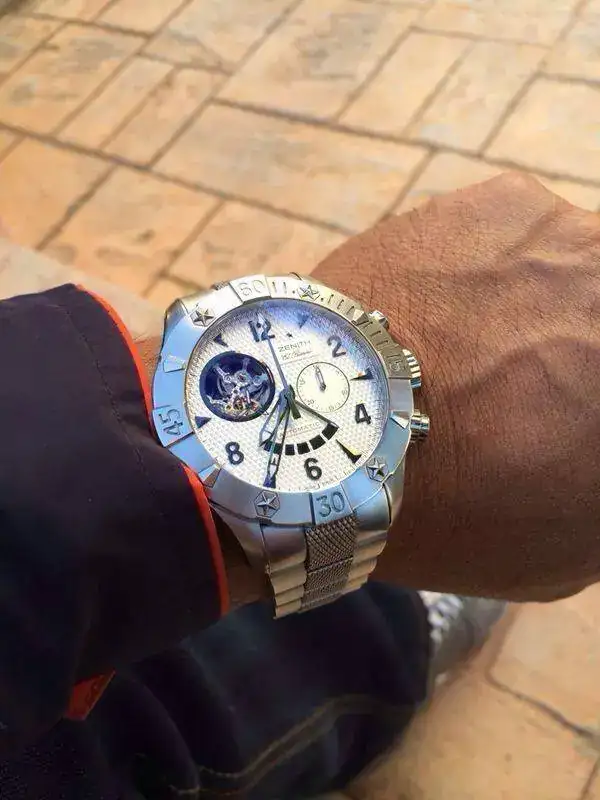 buenas a todos, saco a la venta este bicho de 47mm, doble cristal de zafiro, reserva de marcha, botones roscados, maquinaria EL PRIMERO etc...va completo de caja , eslabones y tarjeta ( sin fechar) el reloj tiene unos cuatro años, de estado muy bueno, para los delicados ... 3o4 roces nada grave, solo venta, 2800e por mrw incluido, contacto por privado o 687@937@179 por si quereis mas fotos por WHATSAPP , gracias al foro por este espacio