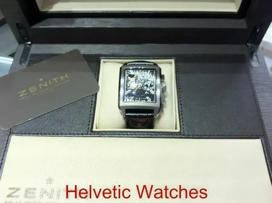 Esfera negra, zafiro con doble antirreflejo y fondo visto que permite admirar el legendario movimiento cronografo de alta frecuencia el primero 420.