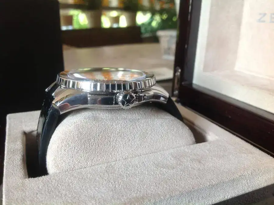 Llevè mi Zenith Startos al SAT porque la trotadora no reseteaba a las doce perfectas sino que tenía una pequeña desviación. El reloj tenia entonces dos meses y cuatro puestas, hablamos del pasado mes de Marzo. Tras tres meses de espera, ha llegado hoy, perfecto,precioso, incólume.Al parecer una pieza del chrono estaba un poco suelta de fábrica y para ajustarla y por precaución me han desmontado el reloj entero y vuelto a montar el calibre.