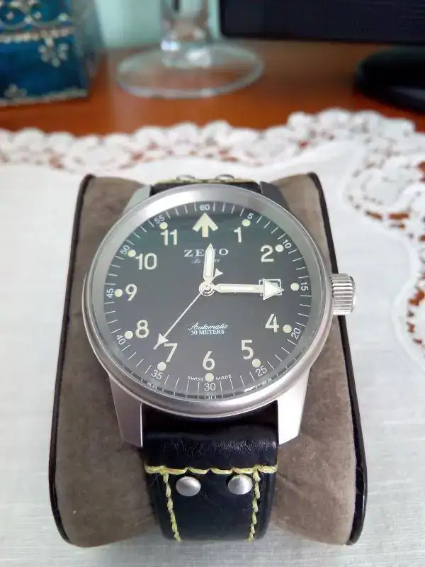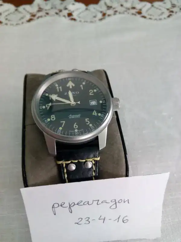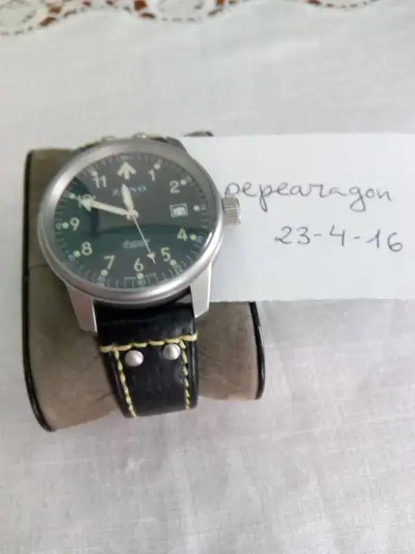 Hola, vendo este Zeno automático como nuevo. Envío con su correa original y una pilot con pespunte amarillo que es la que tiene en las fotos y le queda de cine. Podría admitir cambio por Hamilton Khaki Field Officer Mechanical de 38mm y esfera negra. Le pongo un precio de 250 euros con envío por correo certificado urgente incluido. Para contacto, por mensaje privado. Saludos.