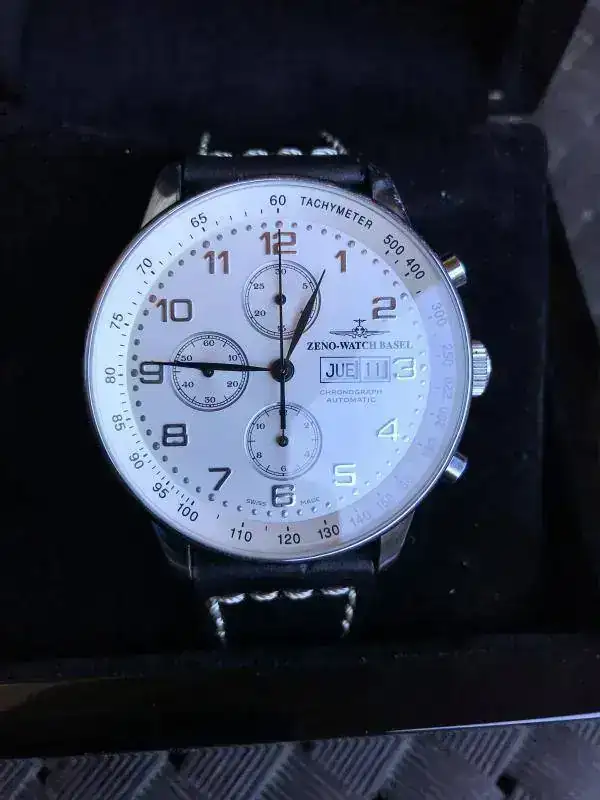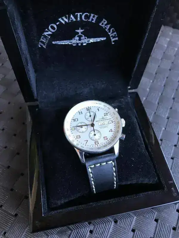 Pongo a la venta este bonito crono de Zeno en buen estado y poco visto. Dispone de doble calendario con mes y día y el estado de marcha es bueno. Los papeles se han extraviado en una mudanza. Es una pieza contundente y elegante. Cualquier duda o consulta, privado al canto