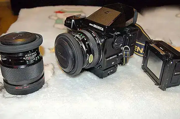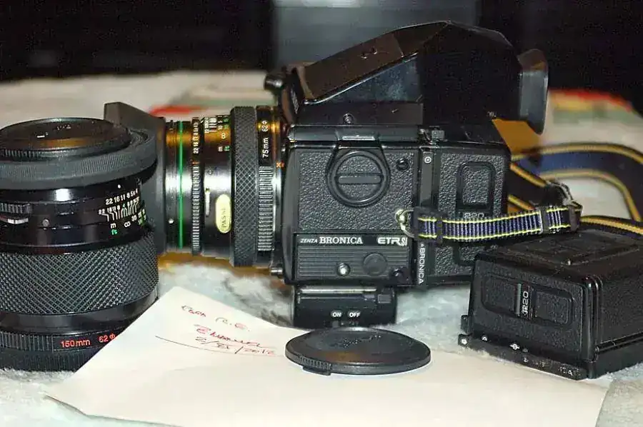 Acabo de recoger un rollo de 220 color de prueba, hecho desde 1/500-2.8f a 1/8-22f, tanto con el 75 mm. como con el 150 (este empieza en 4f), y todo perfecto. Bueno, hay tres blancas, pero se debe a que el flash (que tambien testeé) no saltó. Creo que es porque llevaba pilas recargables de 1.2 v. y tienen poca chicha para la recarga.