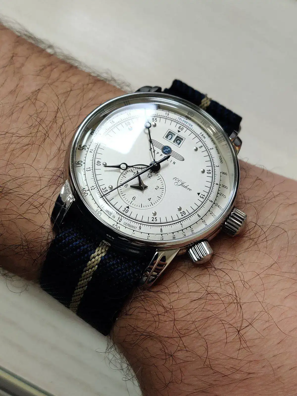 Reloj alemán con corazón suizo Ronda 5020B, cristal mineral y una correa de calidad sorprendentemente buena, además de fechador grandote. Me encanta el lumen.