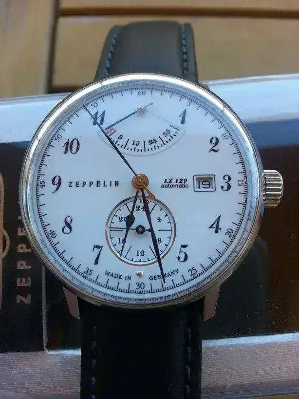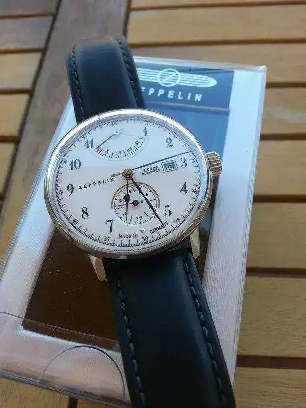 Saco a la venta este magnífico Zeppelin Hindenburg, que comparte nombre con el mítico zeppelin que terminó quemado. El reloj es estilo bauhaus, con unas bonitas agujas negras moldeadas, un movimiento muy suave y moderno (miyota 9100) y con una muy buena calidad general. Está impoluto porque lo compré hace unos meses y me lo habré puesto dos veces. De ahí que lo vendo.
