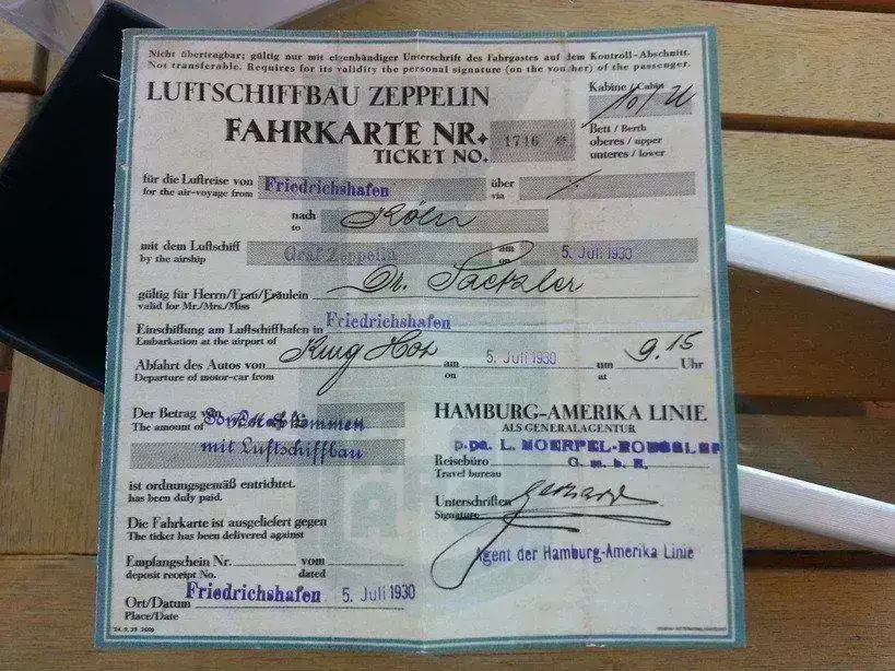 - Caja que incluye un facsímil de un billete del viaje del Hindenburg