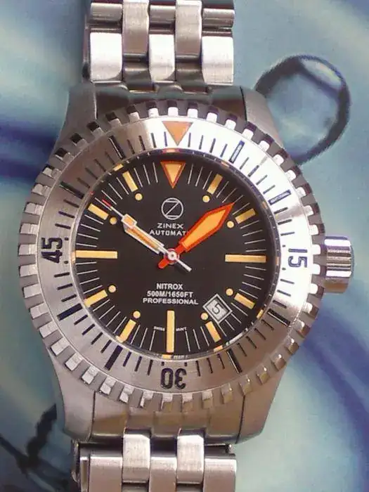 Muy a mi pesar pongo a la venta este fantástico y en perfectísimo estado Zinex Nitrox 500. De hecho el primer Zinex que sacaron. Sólo se fabricaron 100 uds (el mío es el núm 19) y sólo 2 con el punto de las doce del bisel todo naranja. El reloj está en PERFECTO estado (99%) y dispone de set completo.