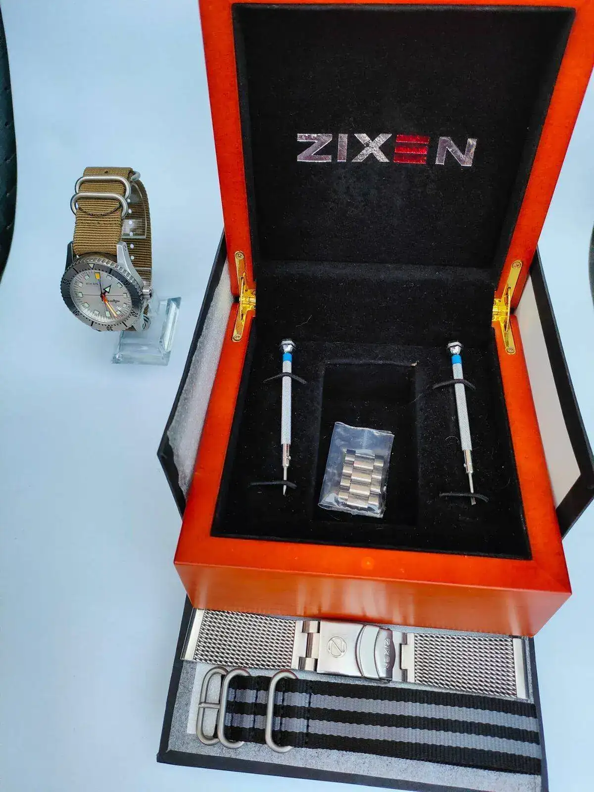 Difícil de encontrar diver de la prestigiosa marca Zixen y a extinta , fue limitado a 3000uds, usado pero en muy buen estado, proveniente de otro compañero de este foro, esta completo, con caja exterior de cartón, caja interior de madera, milanesa Zixen original, instrucciones, tarjeta garantía y 2 destornilladores.