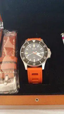 Viene con su caja, papeles, garantia hasta Enero 2015 y correas adicionales