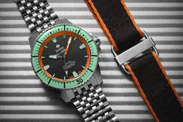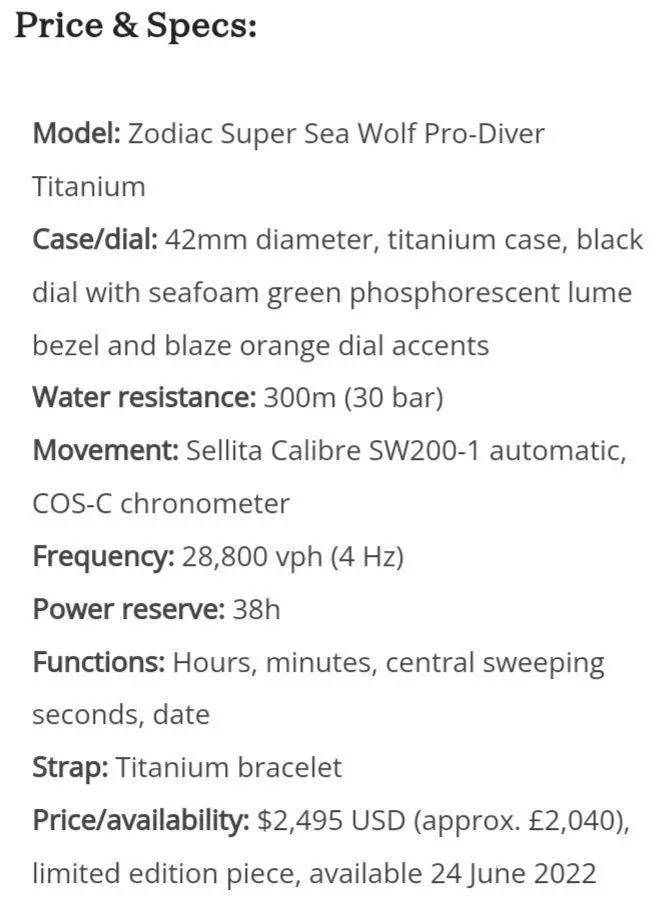 No obstante, se confirma que Zodiac tiene este modelo de la imagen en edición limitada de 42mm, Titanio, calibre Sellita COSC,certificación ISO y WR300m. Su pvp es de casi 2500$