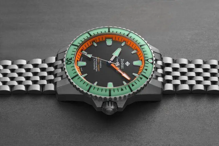 Con motivo de los 140 años de existencia, Zodiac ha decidido lanzar el ZO9595. Se trata de un bonito Sea Wolf de 40mm que destaca por su caja cerámica combinada con esfera azul y caucho. Costará 1695$.