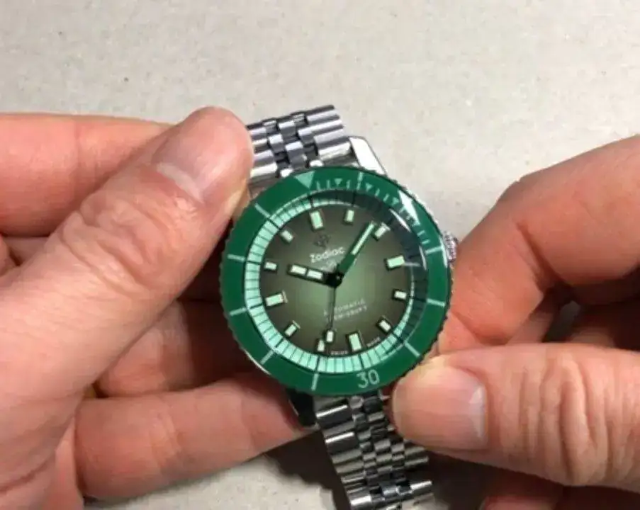 Se trata de otra variante de 40mm, bisel verde, esfera verde fumé y disponible con brazalete o Nato.