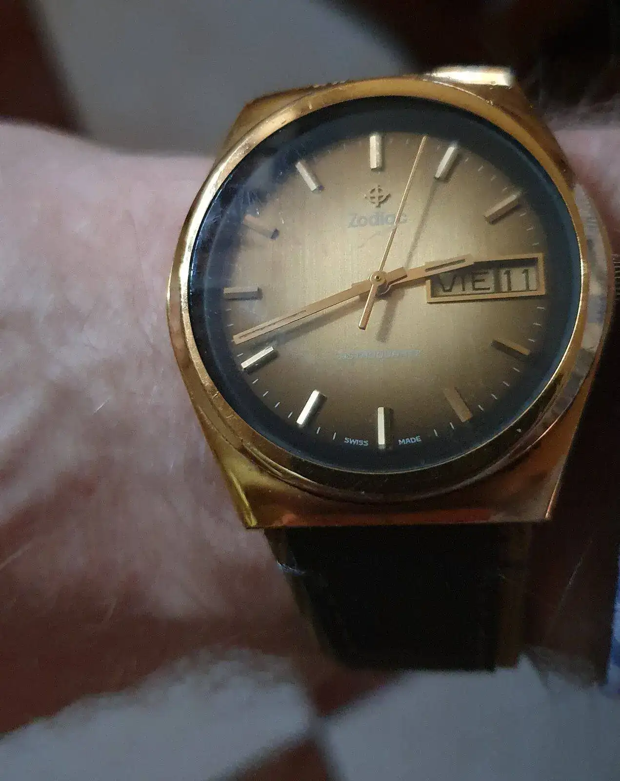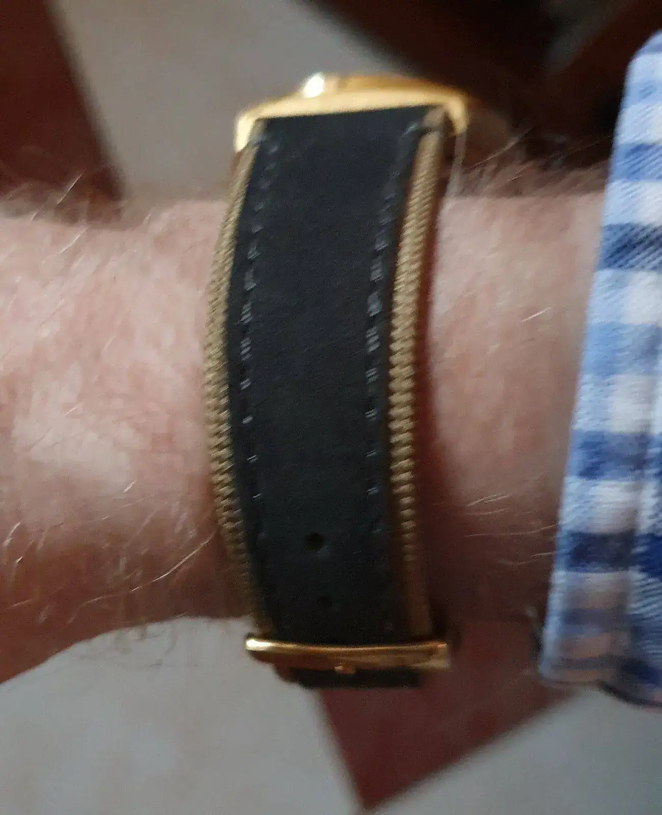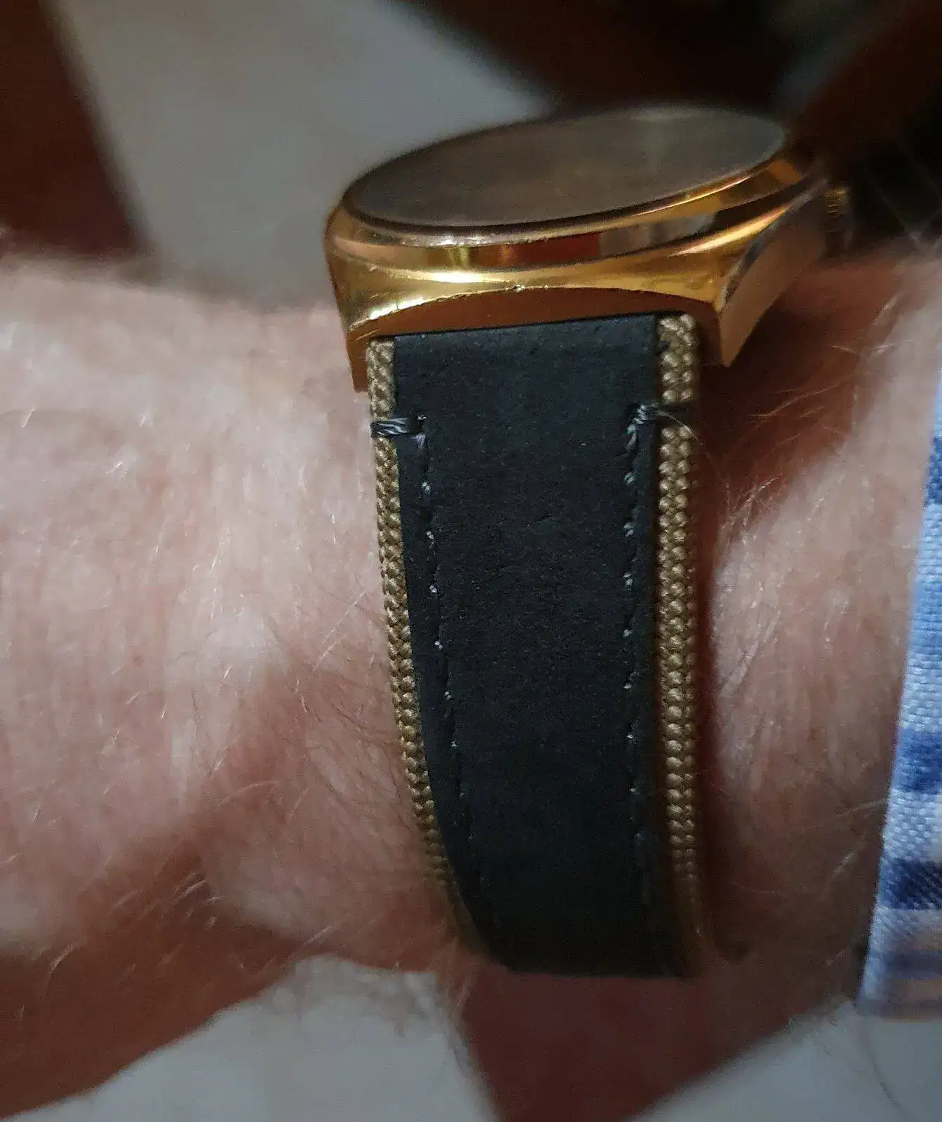 La milanesa al verla sobre el reloj le daba un aspecto interesante, si la caja fuera en acero me hubiera llevado esos pantalones, pero en color oro para ir en sintonia, no me llenaba. A la cabeza me venía MR.T 😁 del EQUIPO-A. Imposible, no me veo...