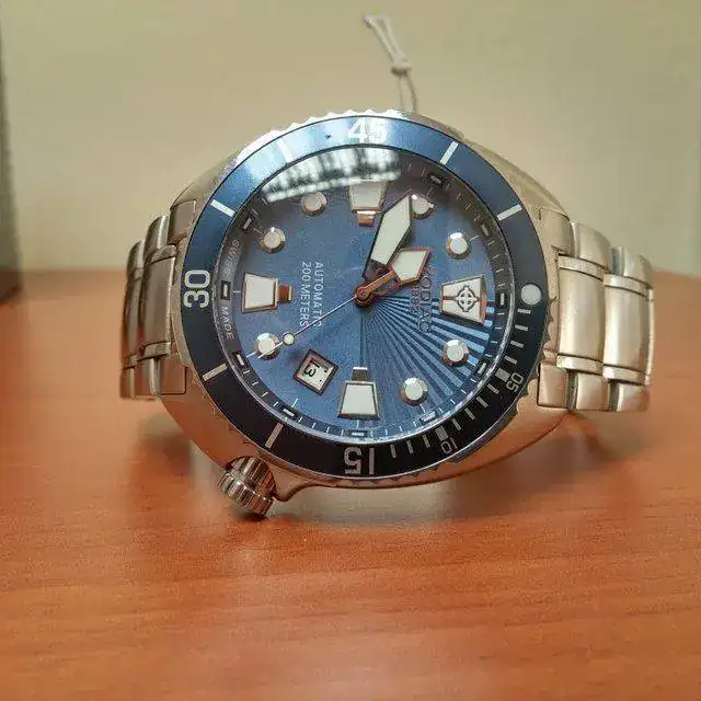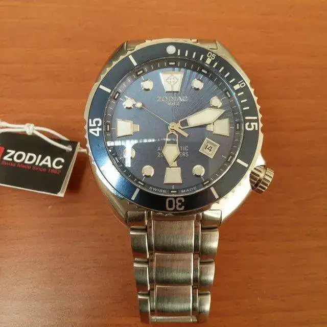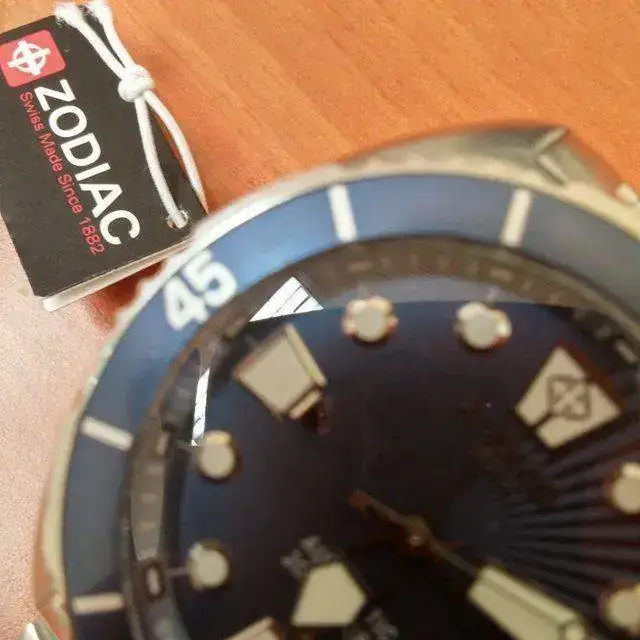 Bueno fruto de una futura compra y necesitando Cash pongo este reloj casi de reestreno. Es un zodiac oceanaire de serie limitada, es la versión blue muy limitada, el azul es muy parecido al seamaster. He de decir q aunque esta de reestreno tengo q destacar a la altura del 45 una pequeña marca de cabeza de alfiler casi inapreciable. Va con armis muy difícil de conseguir y zafiro. He de decir q el movimiento es swiss madera no como los de ahora q son chinos.