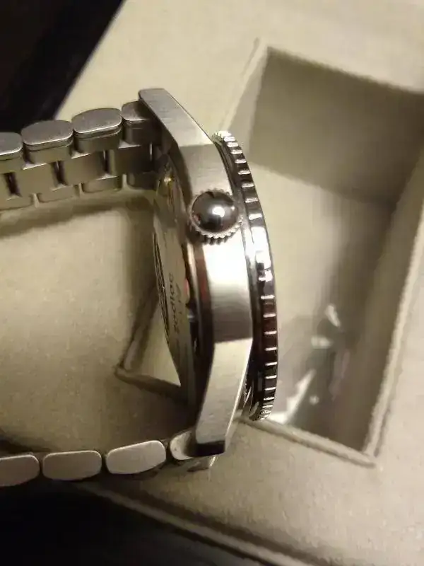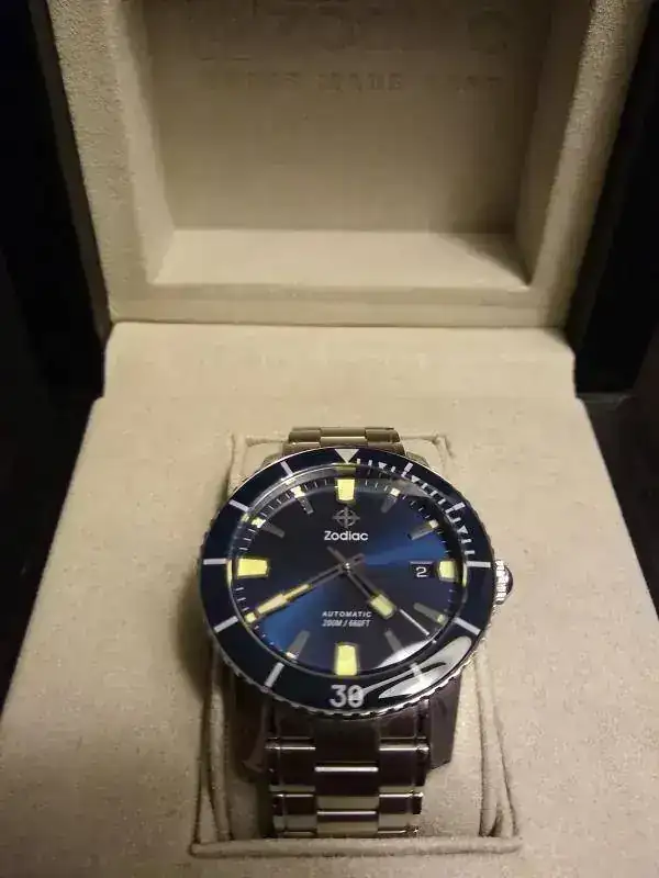 Ante todo, feliz año a todos. Saco para venta este pedazo de reloj, precioso por donde se mire, con un color hipnótico, aunque para mí muñeca me lo veo justo de tamaño, y como ha entrado otro azul, pues le doy salida. Está como se ve en las fotos, en muy buen estado, aunque lo haya usado. Únicamente me interesa para cambio alguno tipo fifty fathoms.