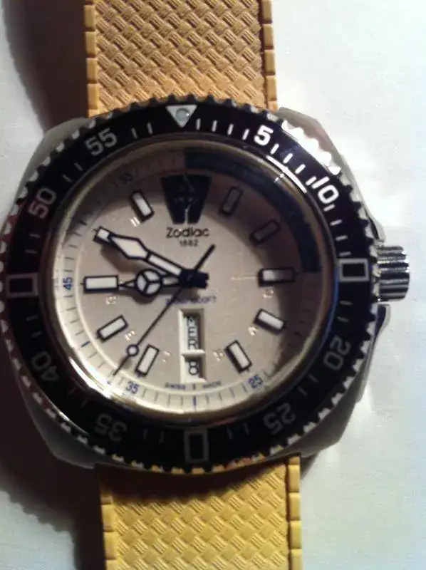 Pongo en venta este Zodiac V Wolf. Un reloj que bajo mi humilde opinión cumple con las 3 BBB. Si tiene algún pero es la correa de plástico que me resulta muy desagradable al tacto. Aunque también deciros que una correa de cuero le sienta ideal.