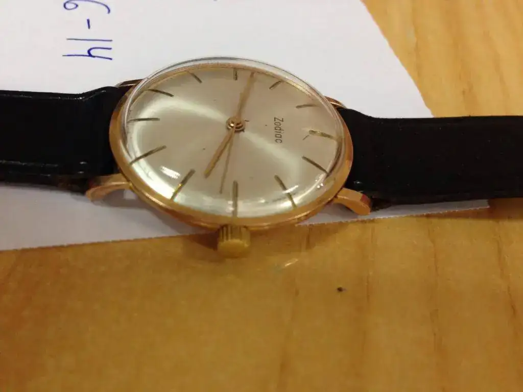 Buenos días, saco a la venta este reloj Zodiac extra plano de cuerda manual. El reloj está recién revisado y tiene una marcha perfecta, para los años que tiene su estado es bueno. La corona no es original ni la correa pero mandó la corona en una funda de plástico. El reloj sin corona tiene 33mm. Pido 95 eur y aceptaría cambios por otros modelos de Zodiac de los años 70, ya que es hacia donde voy centrando la colección. Por supuesto ajustaría diferencias para modelos de mayor valor. Ahora pongo unas malas fotos