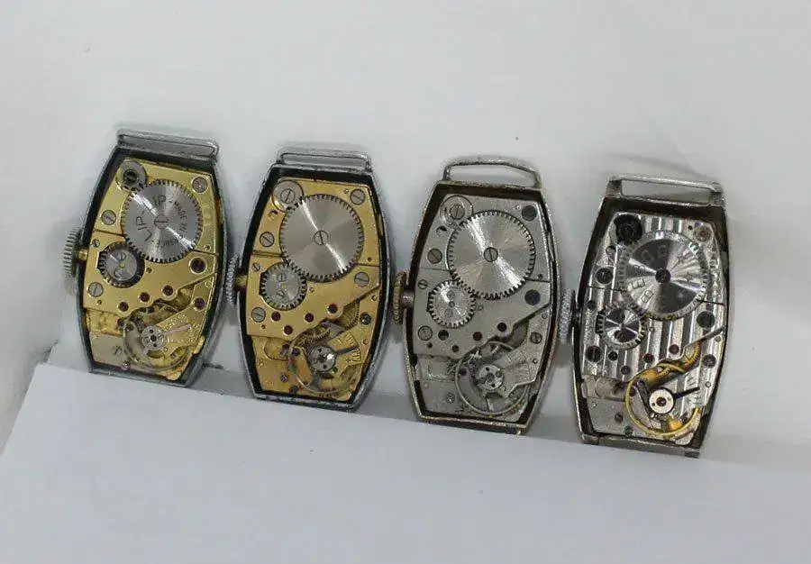 En teoría (no me atrevo a asegurar nada categórico en cuanto a los relojes soviéticos) este pequeño movimiento es de las primeras épocas Zvezda, posiblemente entre el 40 y el 46 procedente de movimientos remanentes del acuerdo con LIP, no conozco la cantidad de máquinas adquiridas ni por cuánto tiempo los franceses sirvieron material a los rusos y siempre es posible que un movimiento del año 40 fuese montado en un reloj del año 45, por ejemplo.