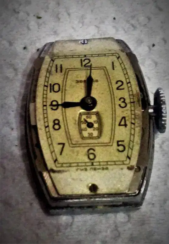 Como he dicho, el reloj está en condiciones correctas, la caja con las marcas habituales, incluso pequeñas para sus años (excepto la tapa trasera que sin duda ha tenido días mejores) y el dial y agujas bastante limpios y legibles sin manchas exageradas y el precio he podido negociarlo y he pagado mas o menos lo normal para una variante esquiva y escasa de este reloj. El modelo rectangular es, con diferencia, el mas caro de media de todos los ejemplares.